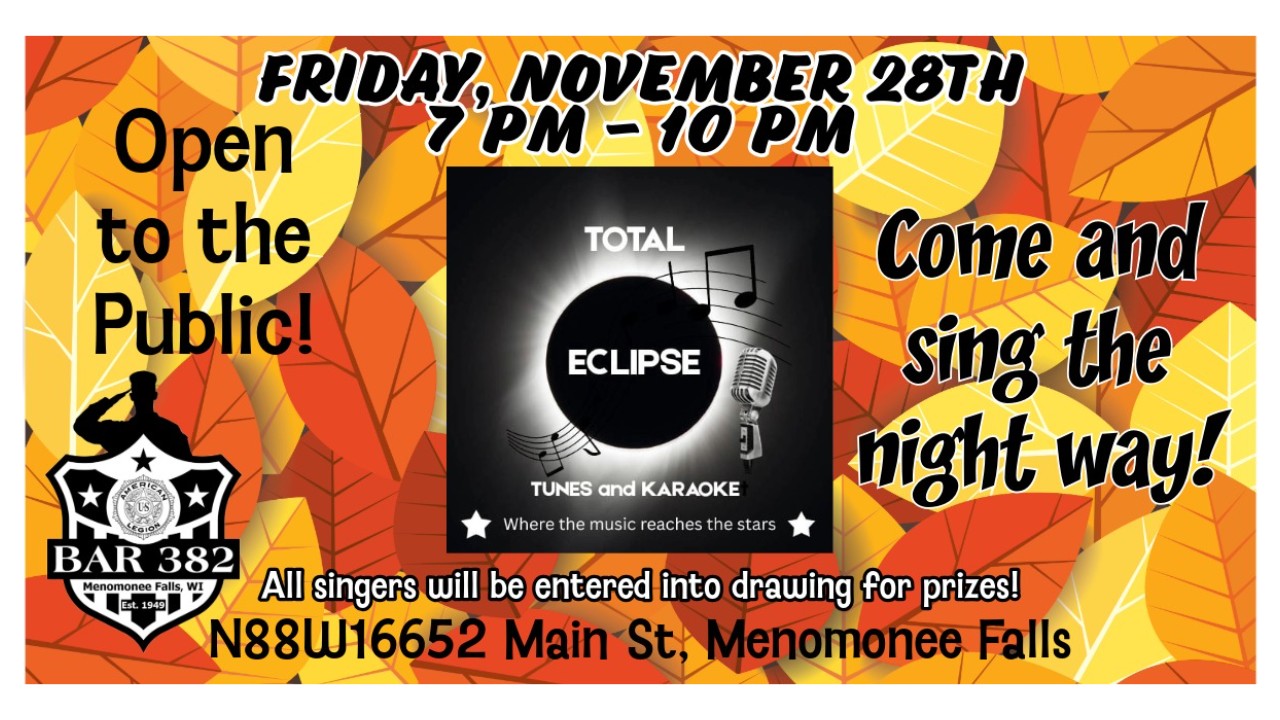 to stay up to date with all our events follow us on Facebook at American Legion Post #382 Bar & Hall Rental