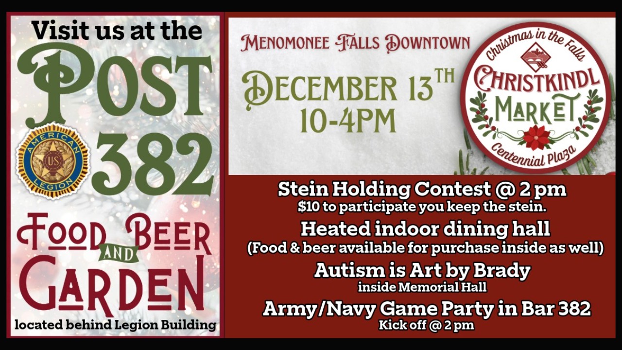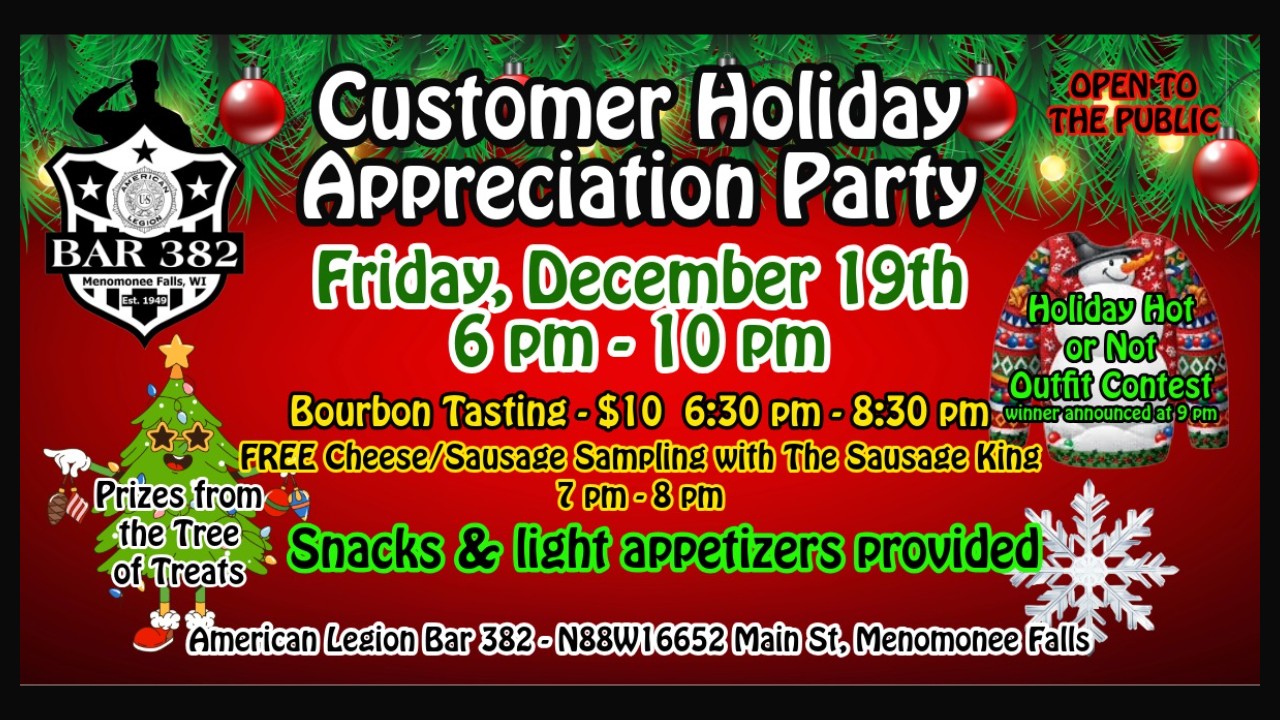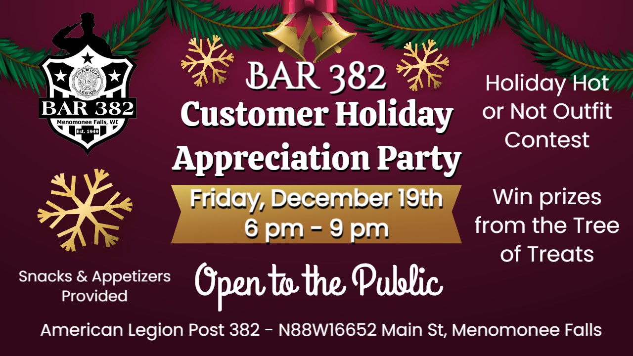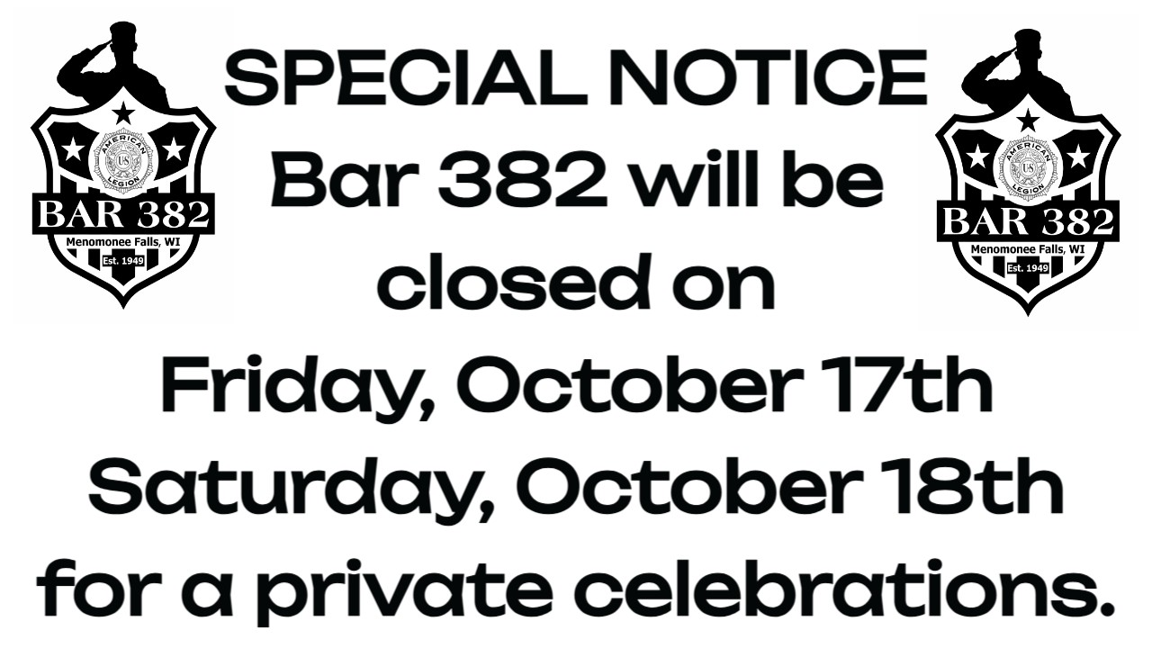 to stay up to date with all our events follow us on Facebook at American Legion Post #382 Bar & Hall Rental