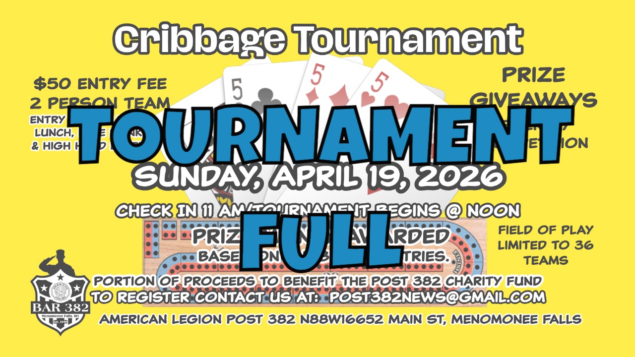 to stay up to date with all our events follow us on Facebook at American Legion Post #382 Bar & Hall Rental