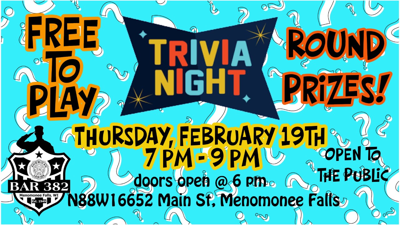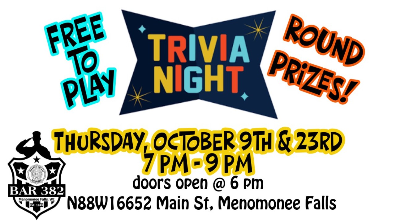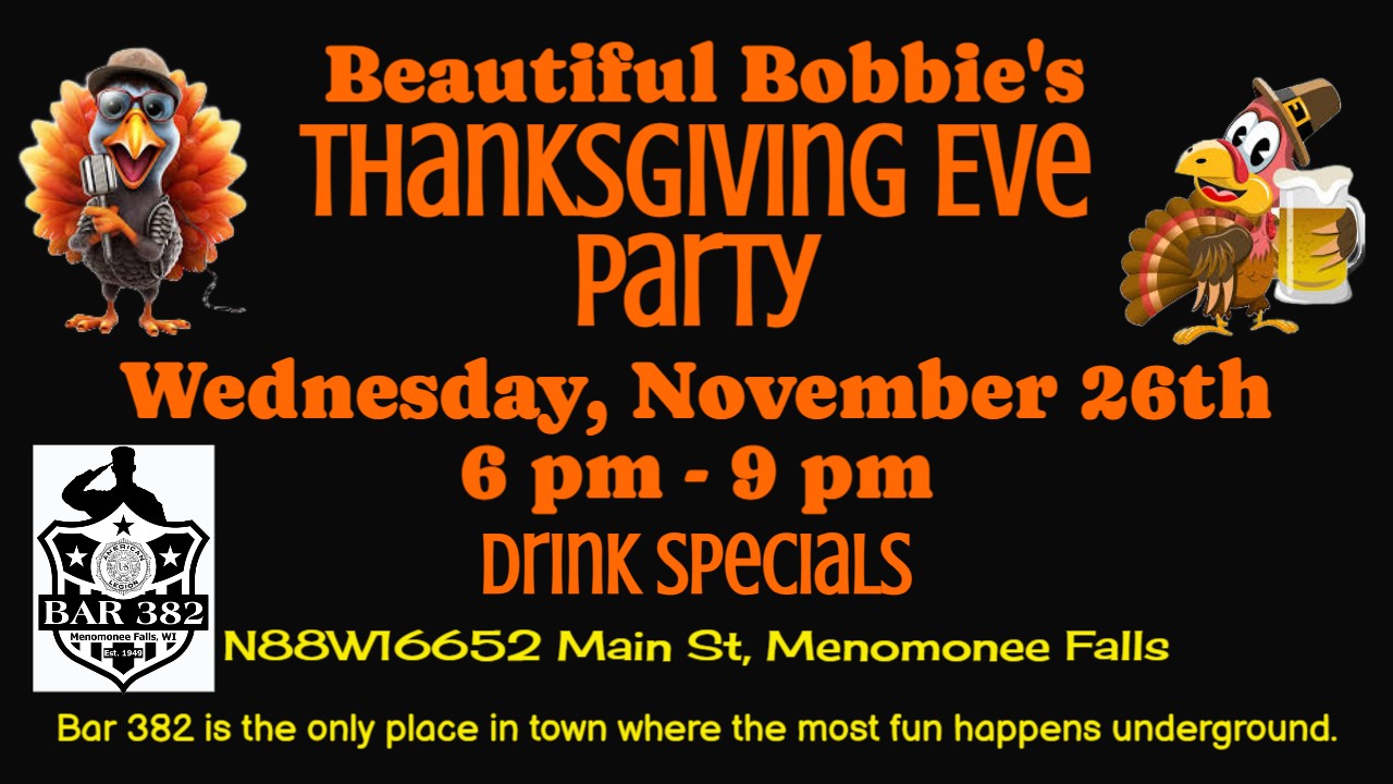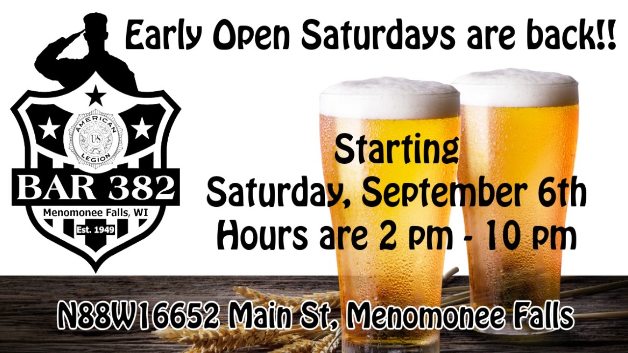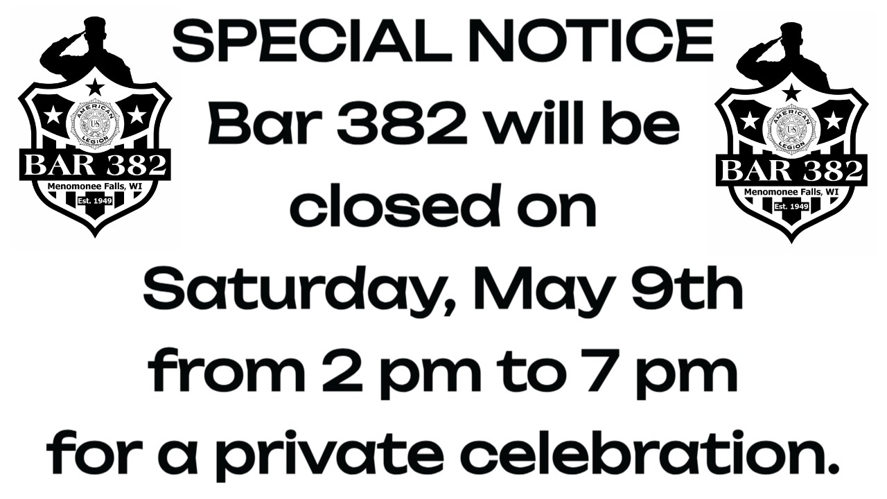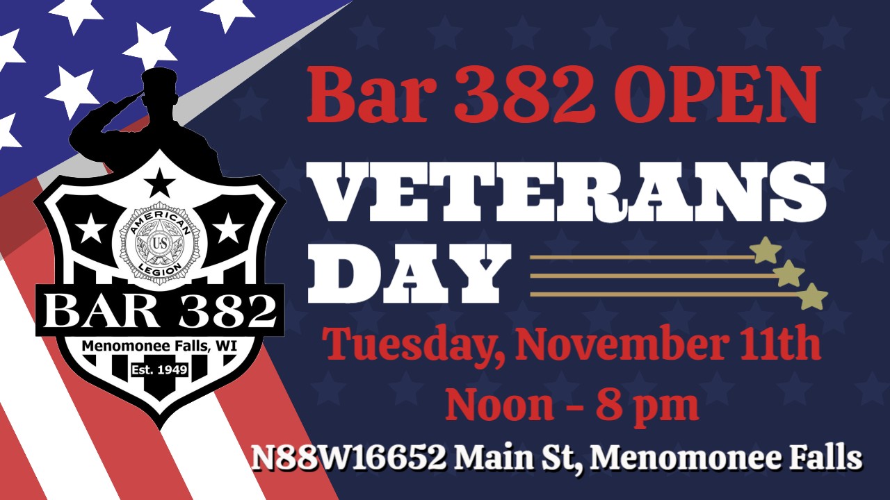 to stay up to date with all our events follow us on Facebook at American Legion Post #382 Bar & Hall Rental